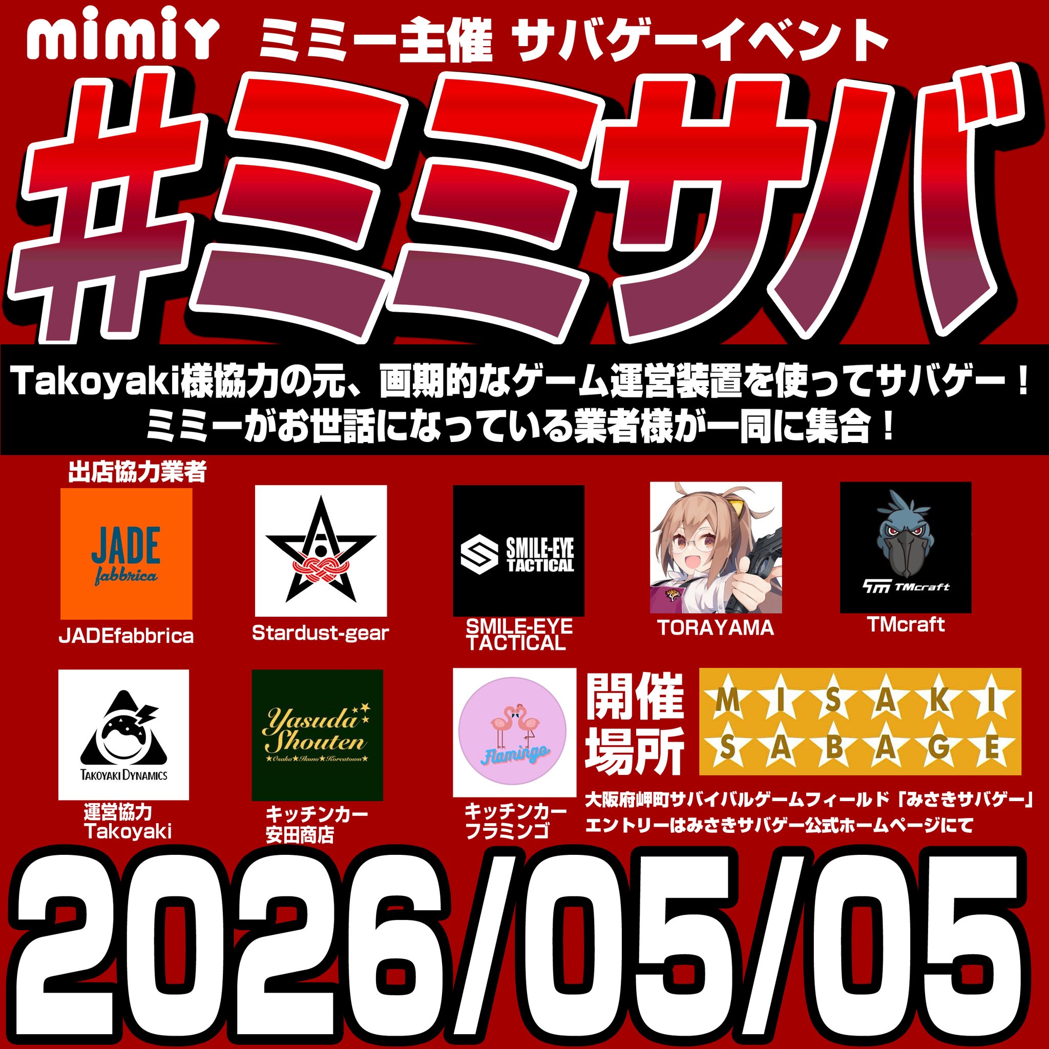 【告知】GW 2026年5月5日 大阪府岬町 みさきサバゲー にてミミー主催 サバゲーイベント